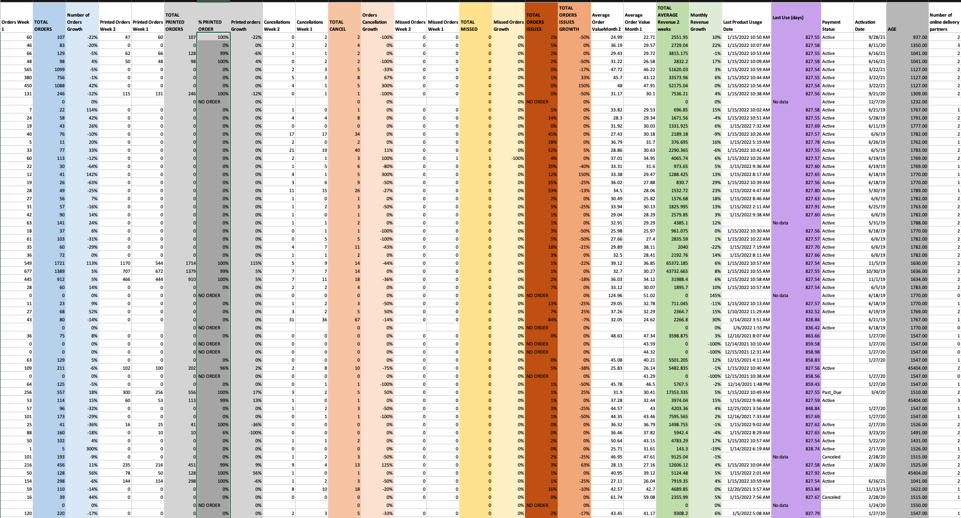 This dashboard is designed to give Customer Success Managers a comprehensive snapshot of their account portfolio's health. It visually presents potential churn risks and upsell opportunities, enabling proactive account management. The Health Score section aggregates key health indicators, including order issues, payment status, and order volumes, providing an at-a-glance evaluation of each account's status and guiding CSMs to prioritize their engagement effectively.